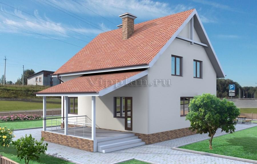 Проект индивидуального одноэтажного жилого дома с мансардой с размерами 10,72 x 16,42 м.