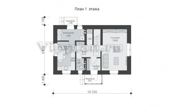 | Размеры дома: | 10.72м×6.82м |